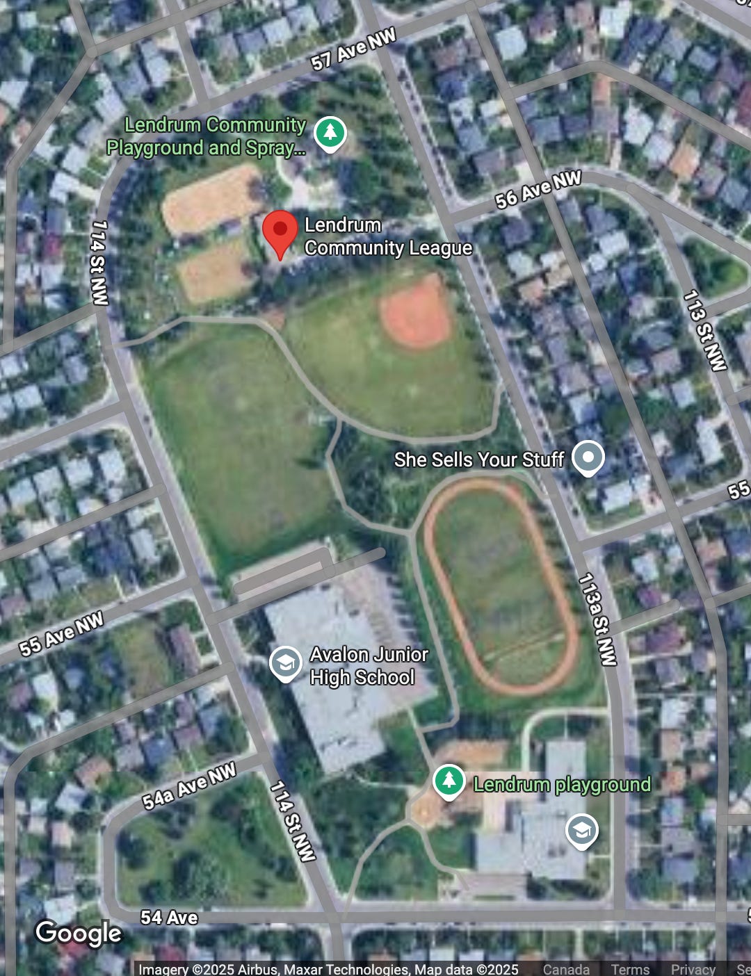 In my 3+ decades of park planning practice, we preferred rectangular or square park configurations for our primary neighbourhood 5 ha -13 ha school and park sites and 32 ha district park sites, dependent on the final program and activities to be accommodated including schools, with 100% public roadway frontage. This is a best case scenario from a services program and function perspective. Lendrum Neighbourhood School and Park Site is rectangular with 100% public roadway frontage. This design maximizes on site recreational and leisure programming and activities for active and passive recreational activities, as well as maximizes the opportunity for access to off site (i.e., street) parking.